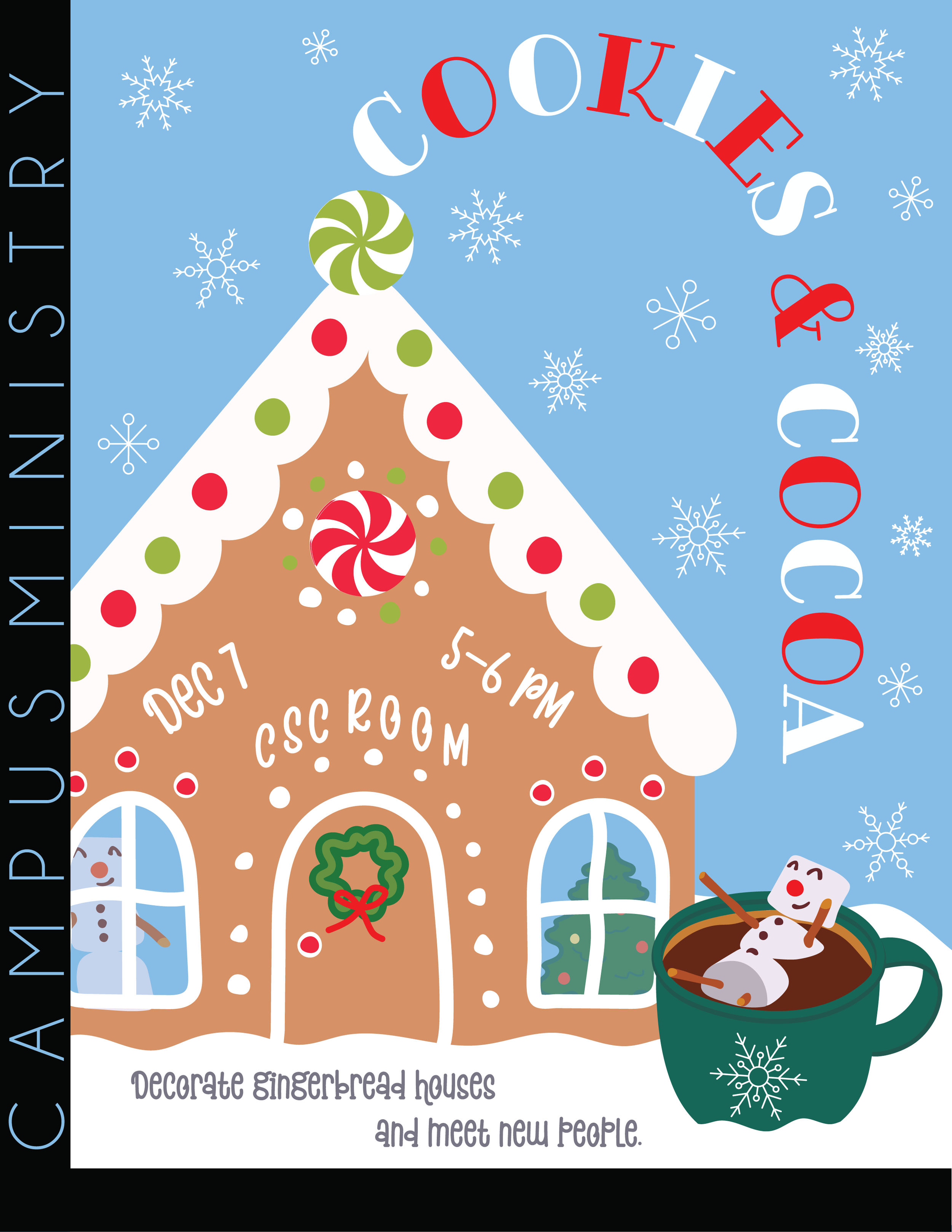 I worked for a little over two years at my university’s Campus Ministry. While working there I created a series of flyers allowing me to get experience with different layout, information hierarchy, and illustration.
